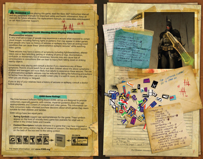 Highly detailed and custom manual design for the special edition version of Batman Arkham Asylum. The concept was inspired by the Joker's psychotic personality. Awarded "Best Product Packaging" GOLD and "Best Collector's Edition Packaging" SILVER at the 2010 MI6 Marketing Awards