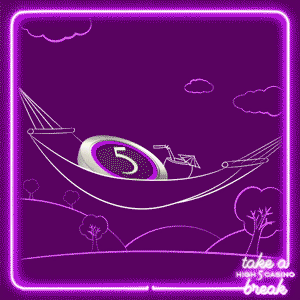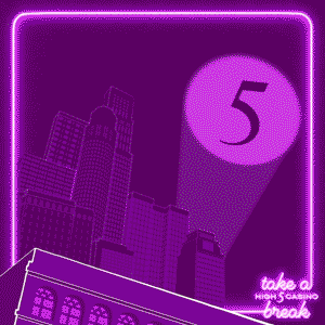 Art Direction for "Take A High 5 Casino Break" campaign. A series of whimsical gifs, brought the "5" coin to life as a mascot in various settings while staying true to the pink and purple branding of High 5 Casino.